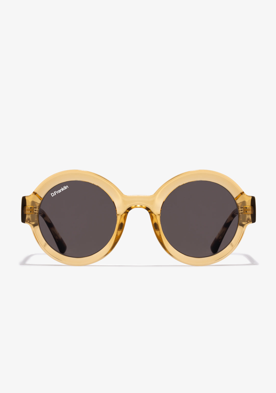 Round-frame sunglasses with a transparent finish in brown tones. A distinctive piece for your most daring outfits.