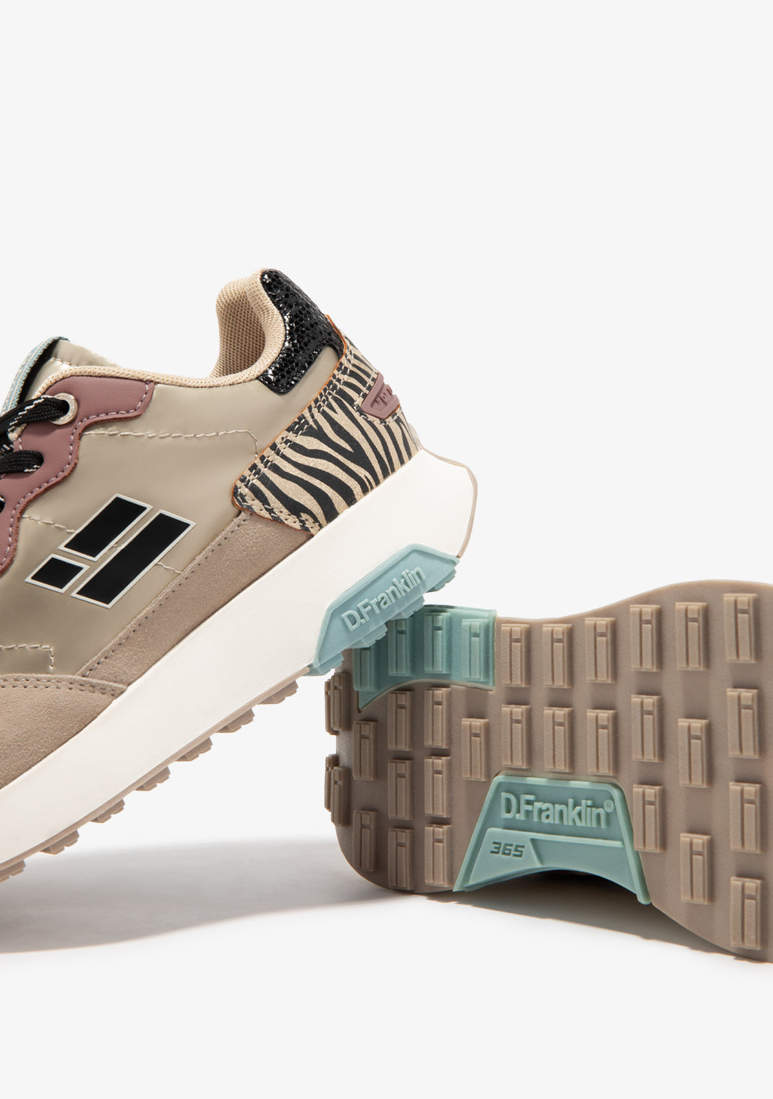 This model fuses different textures with golden and beige tones that highlight its uniqueness. It features the D.Franklin flag on the side and printed laces for a perfect fit. In addition, it has a two-density sole. The first one is made of recycled materials for a comfortable and light tread, and the second one is embossed to provide grip.