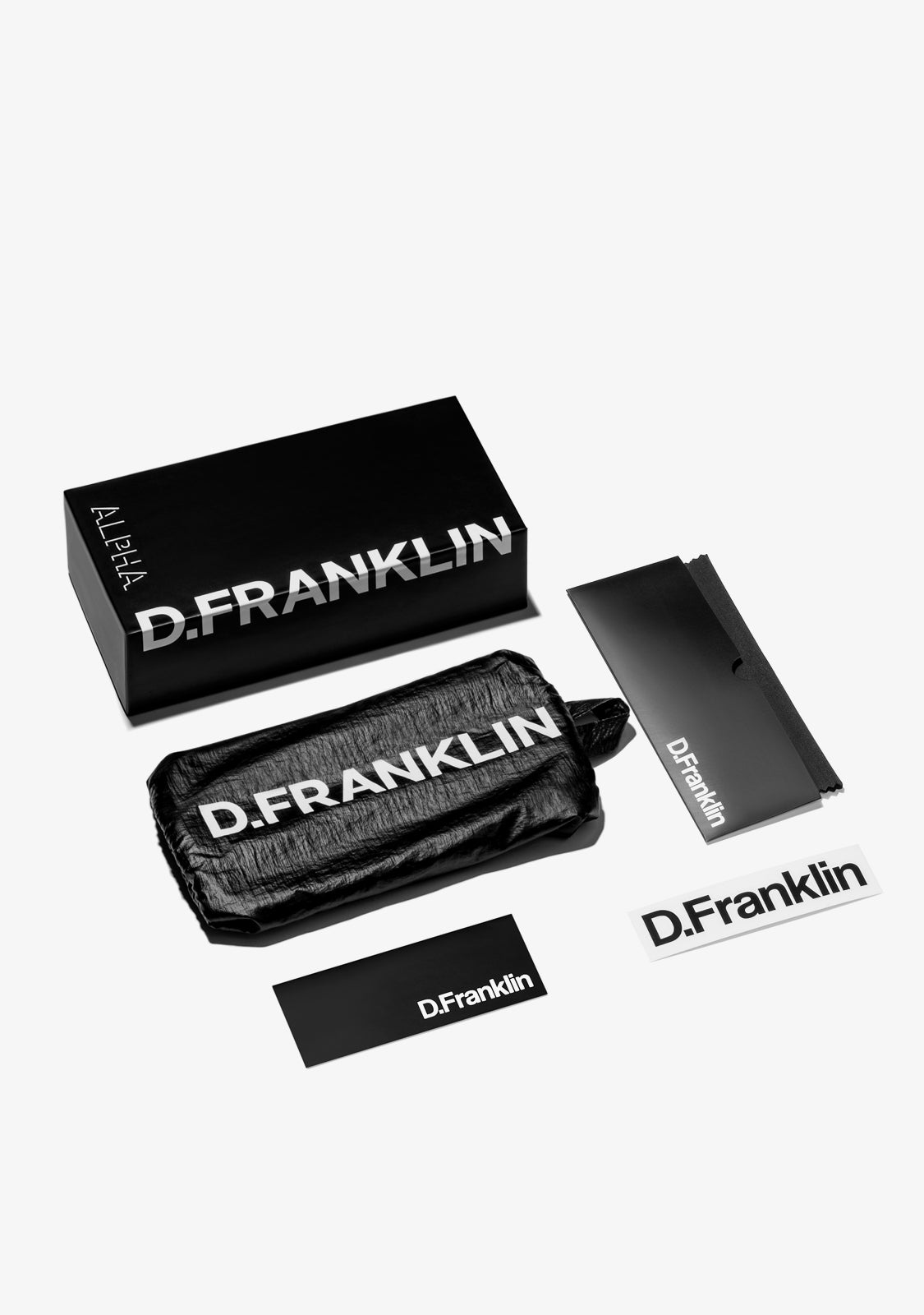 Green-tinted polycarbonate lenses and a dark-tinted frame highlight the uniqueness of this model. Featuring our signature D.Franklin details: engraved logo on the temples and emblem on the right lens. With a lens width of 65.5mm and a 152mm front frame, these glasses will suit most faces. The side temples are 150 mm long.