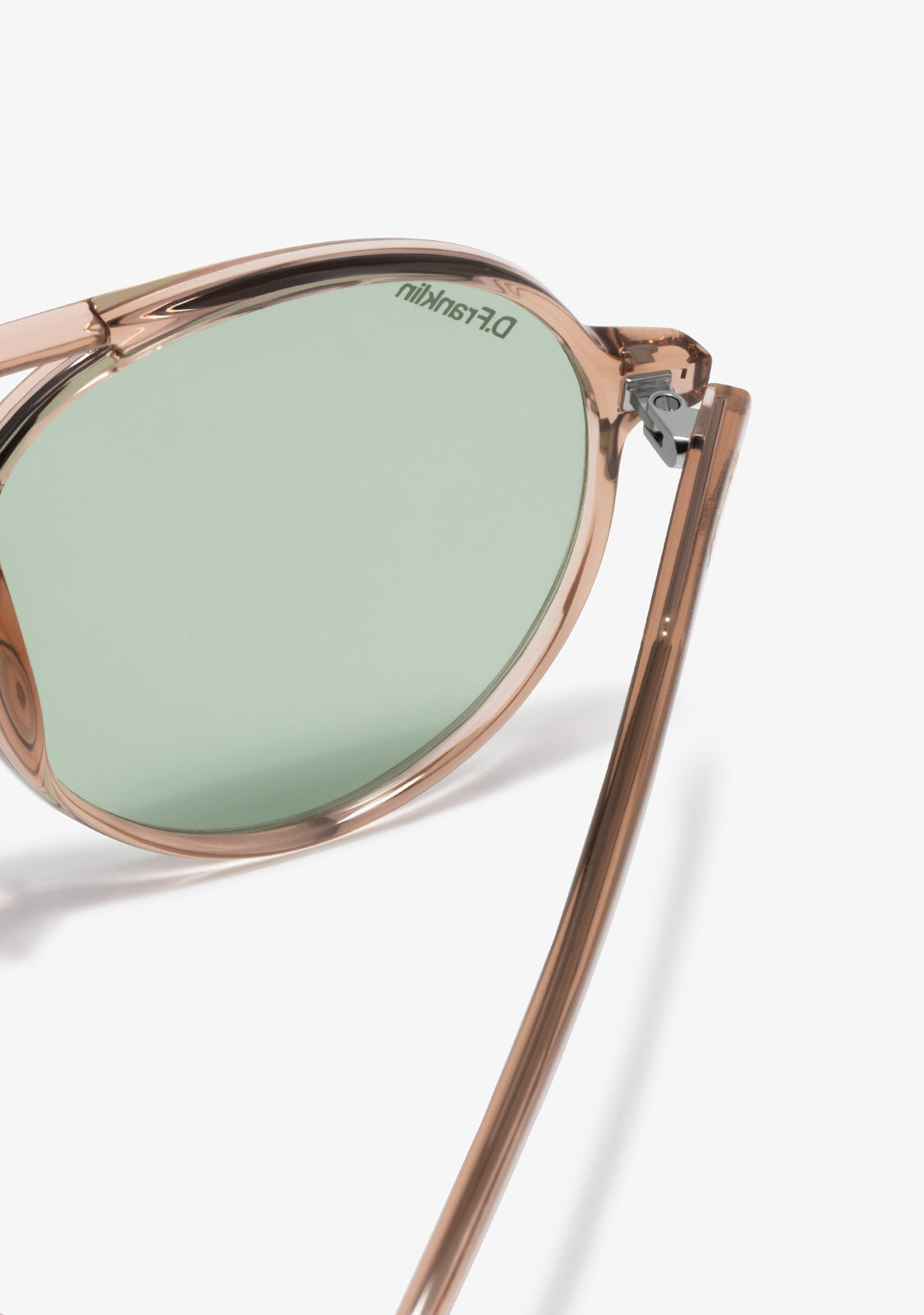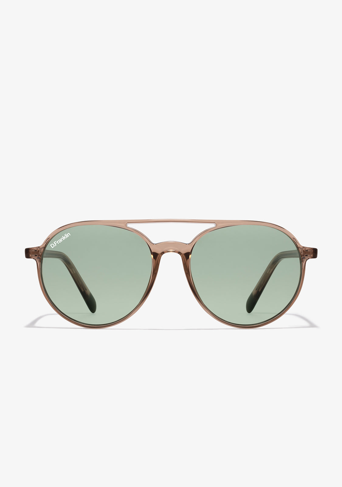 Our America model in olive green features the distinctive details of the D.Franklin brand, the logo engraved on the temples and the emblem on the lens. The lens width is 54 mm and the front is 139 mm. The side temples have a length of 145 mm.