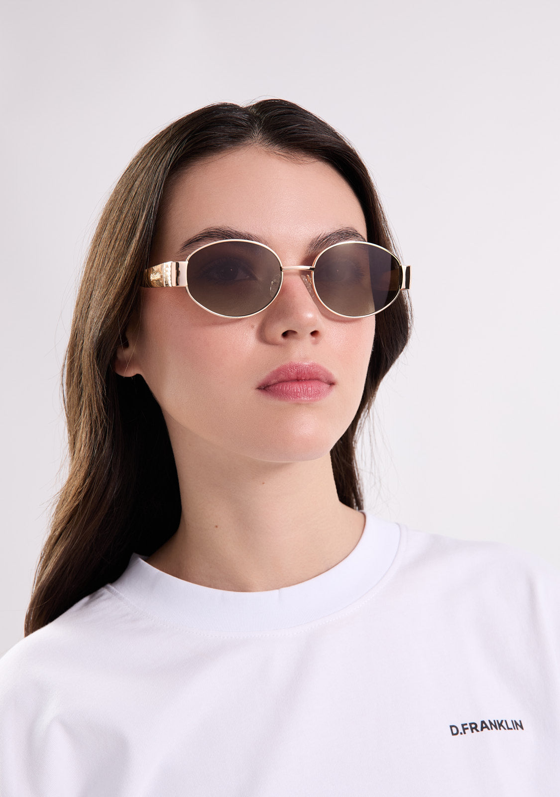 The Cuprum Round Gold / Gradient Brown sunglasses by D.Franklin blend timeless design with functionality in an elegant and sophisticated model. Their durable metal frame ensures both lightness and strength, while the polycarbonate lenses provide full UV protection for comfortable and safe wear.
