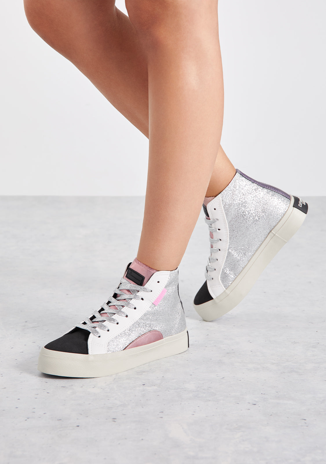 High-cut sneakers with shiny details. A design with metallic finishes inspired by cosmic colours.