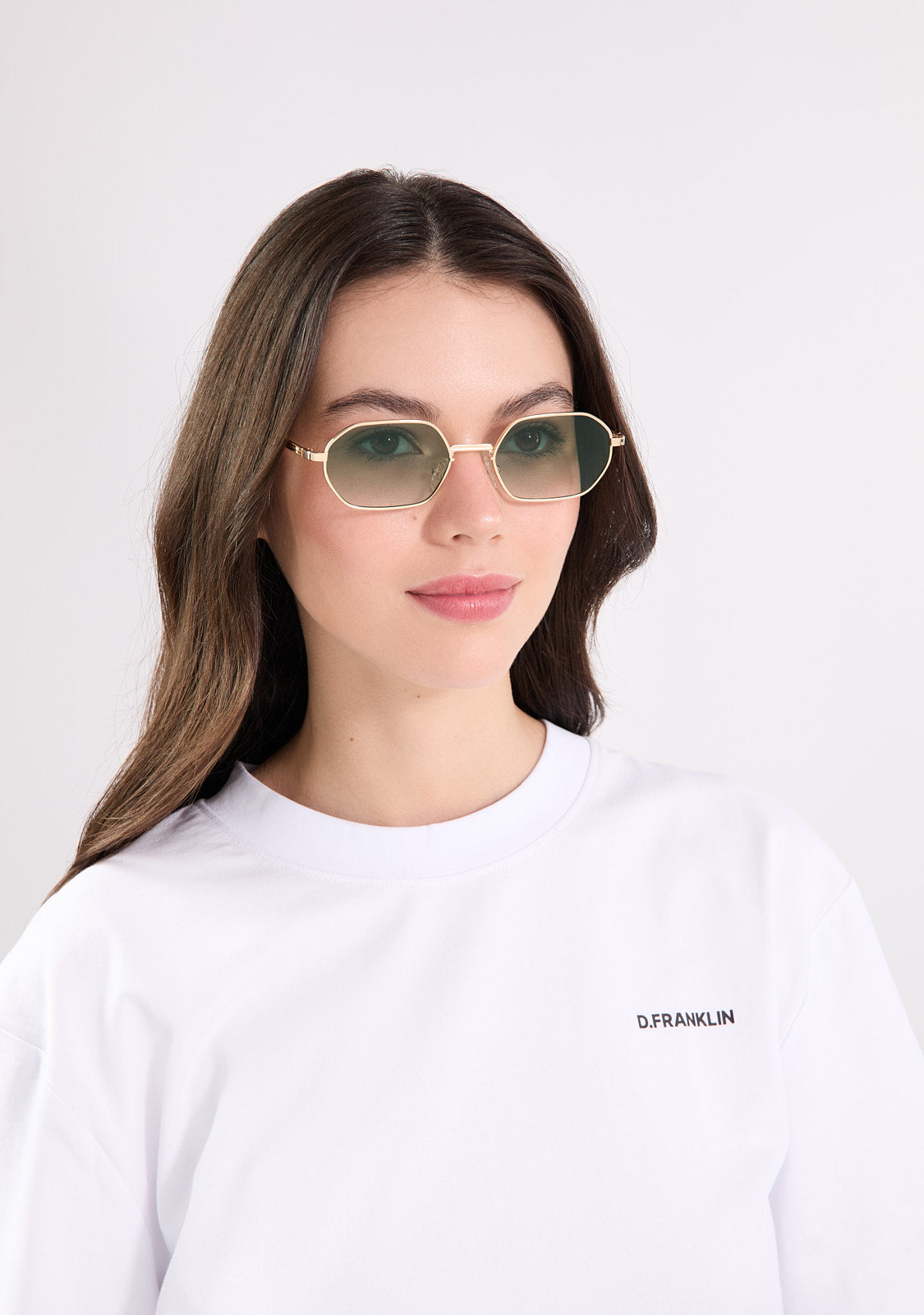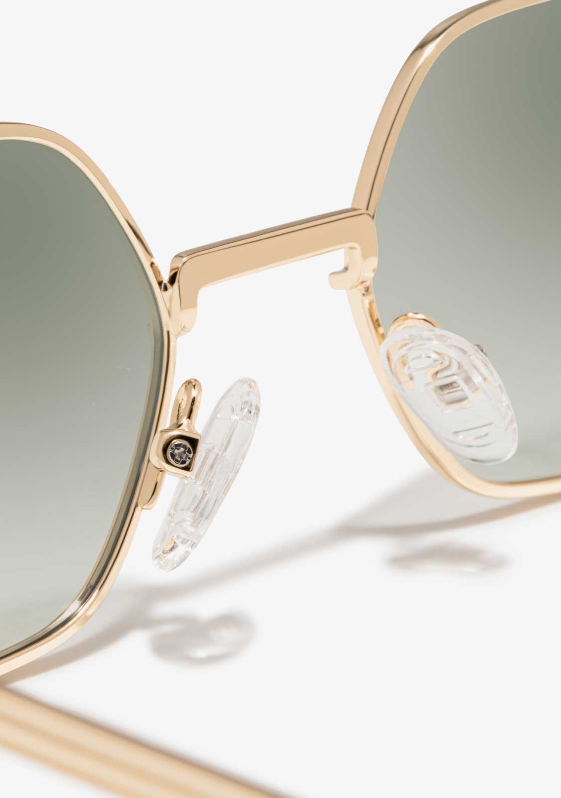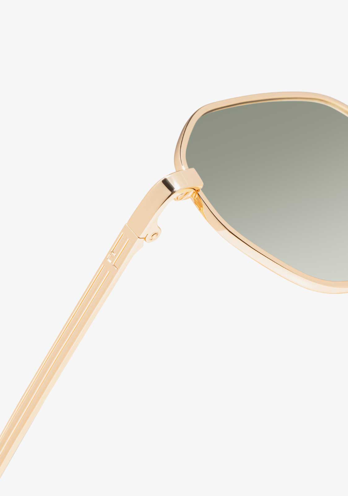 The Square Legacy design features a metallic finish with a hexagonal aesthetic. Its gold-tone frame is paired with gradient green anti-reflective lenses that allow a subtle view through and define the facial features. The front measures 141 mm, and the lens width is 54 mm. The temples are 140 mm long and incorporate our distinctive detailing. A retro yet minimalist piece to frame any outfit.