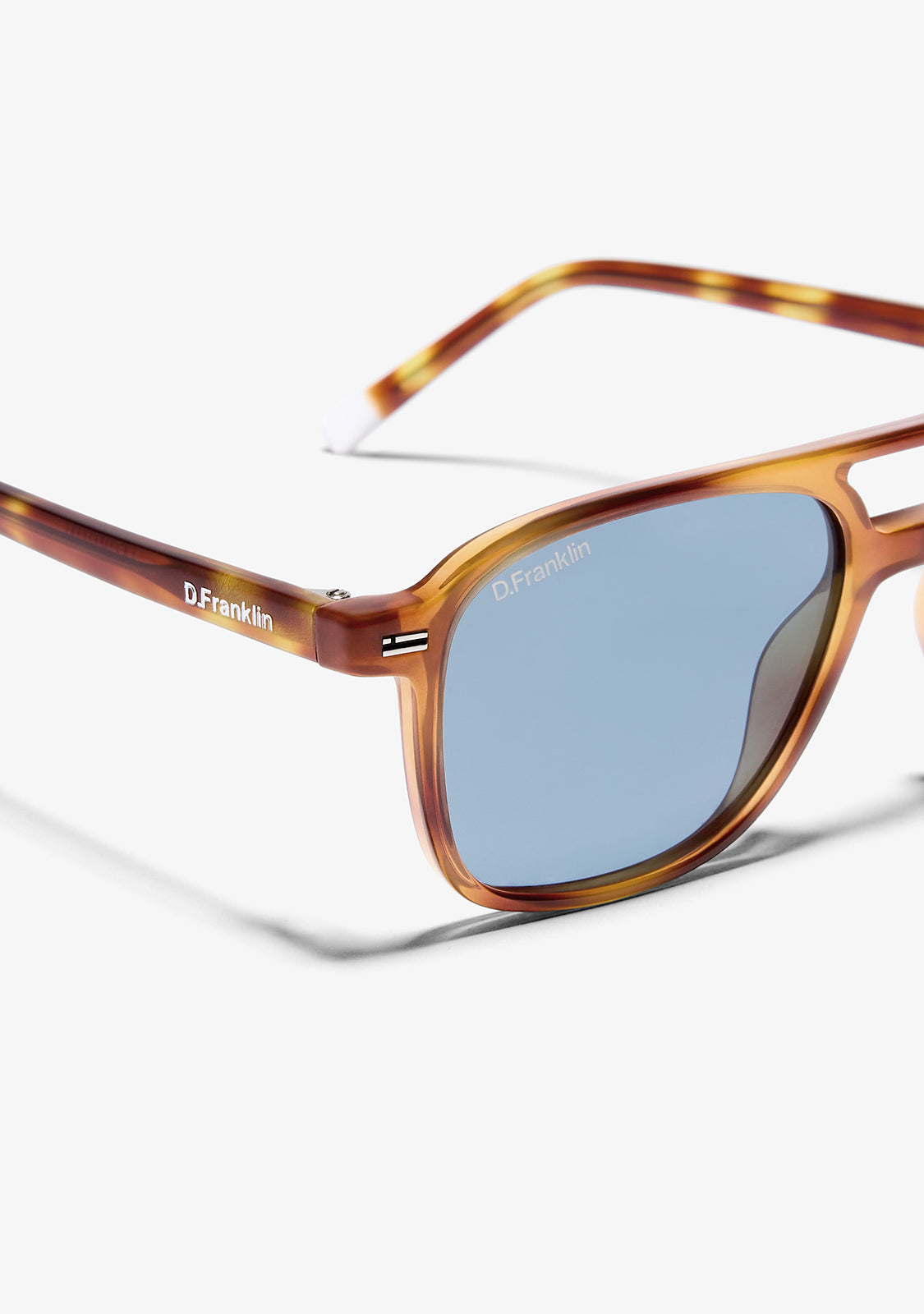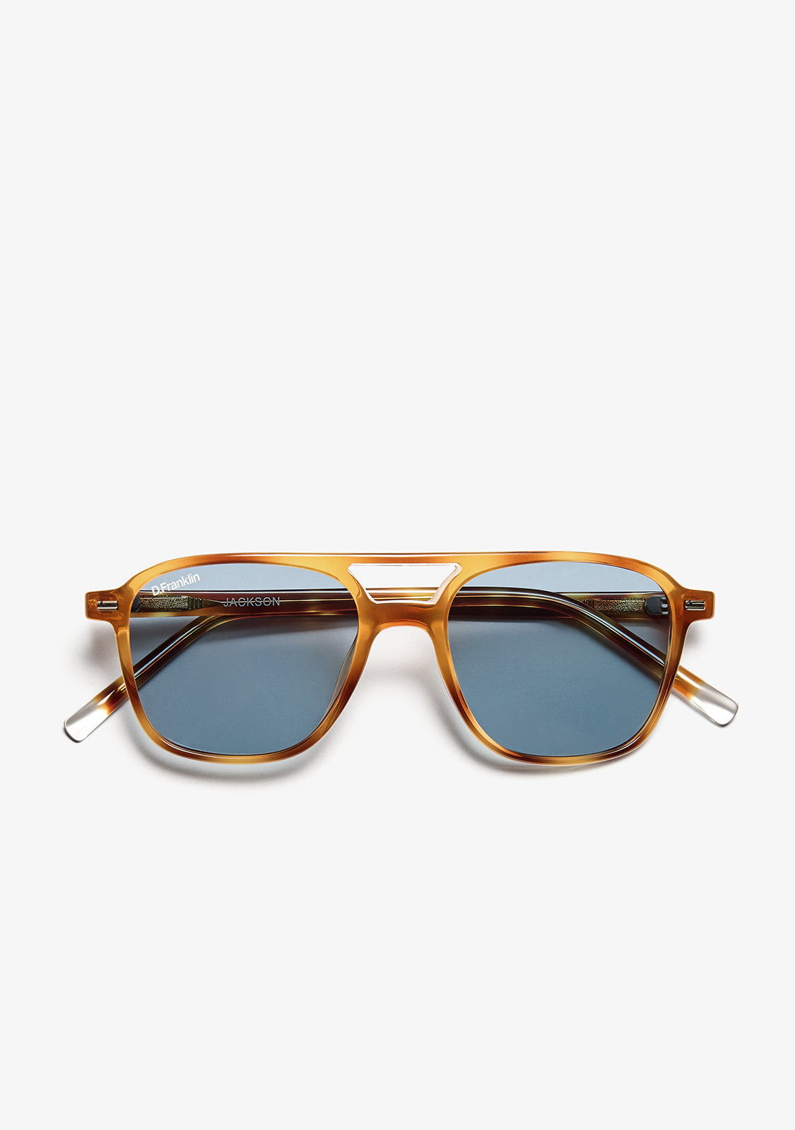Sunglasses with an extralight frame and stylish design that evokes the most iconic models of the 80s. The brand new Jackson Square Amber Tort / Blue brings a design that stands out by its double bridge, the strength of its design and the quality of its materials.