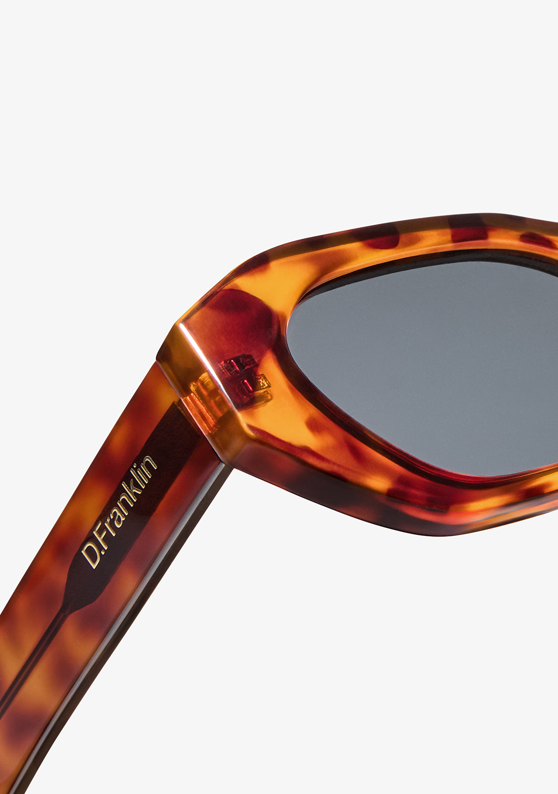 Meet the Meike Tort / Black — a vintage-inspired silhouette finished with signature D.Franklin details, including the logo engraved on the temples and the emblem on the lens. Designed with a 51 mm lens width and a 141.3 mm front, it offers a balanced fit, completed with 140 mm temples and a 20.5 mm bridge.