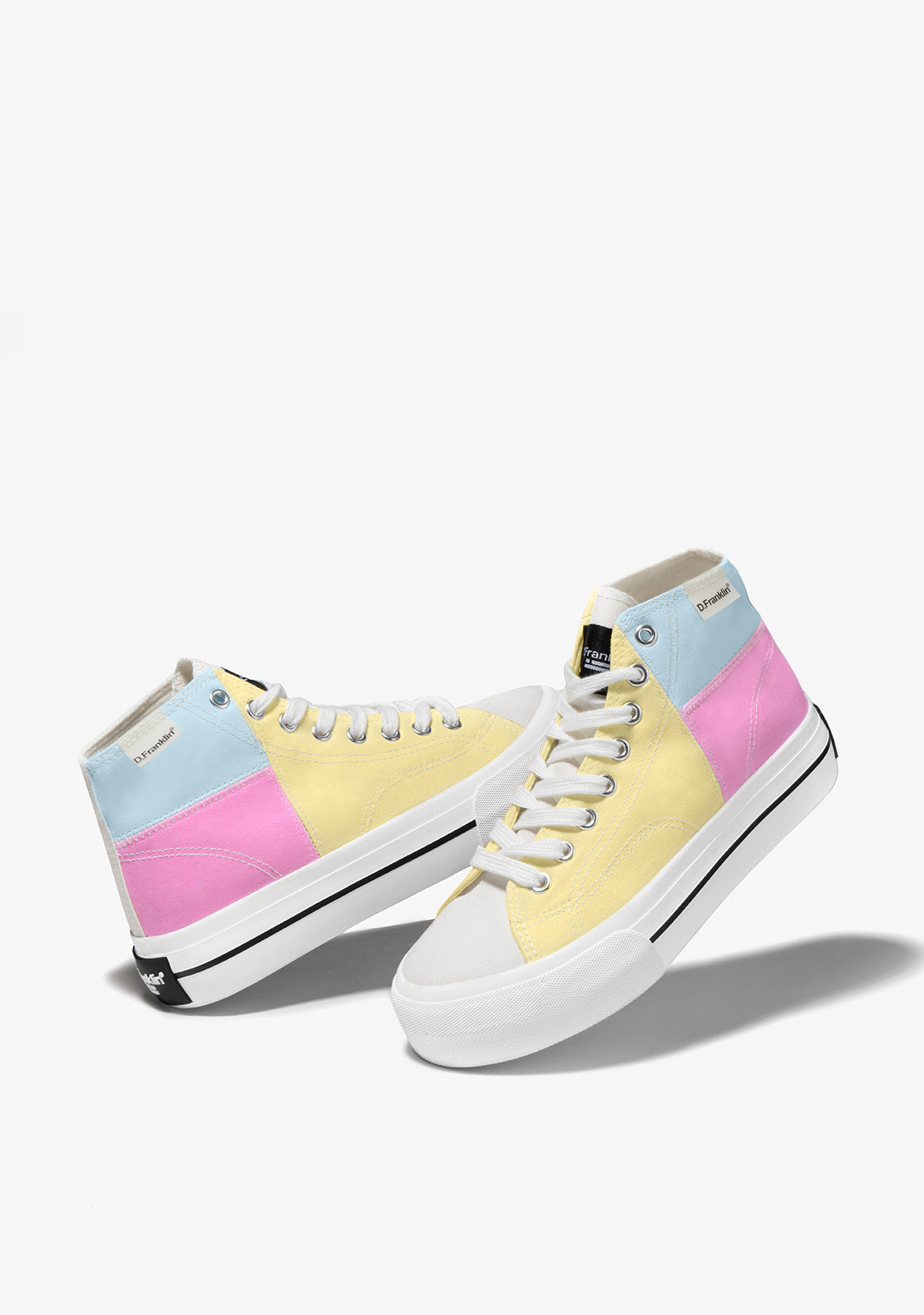 The One Way limited edition is inspired by the most casual collections, combined with the personality and the most marked style of D.Franklin®. The One Way Multi UV are the perfect Hi-top sneakers for all kinds of new roads. A street style model that combines current trends with original details of its materials. Made of white canvas, their appearance changes completely under the sunlight, bringing out their most colorful side.