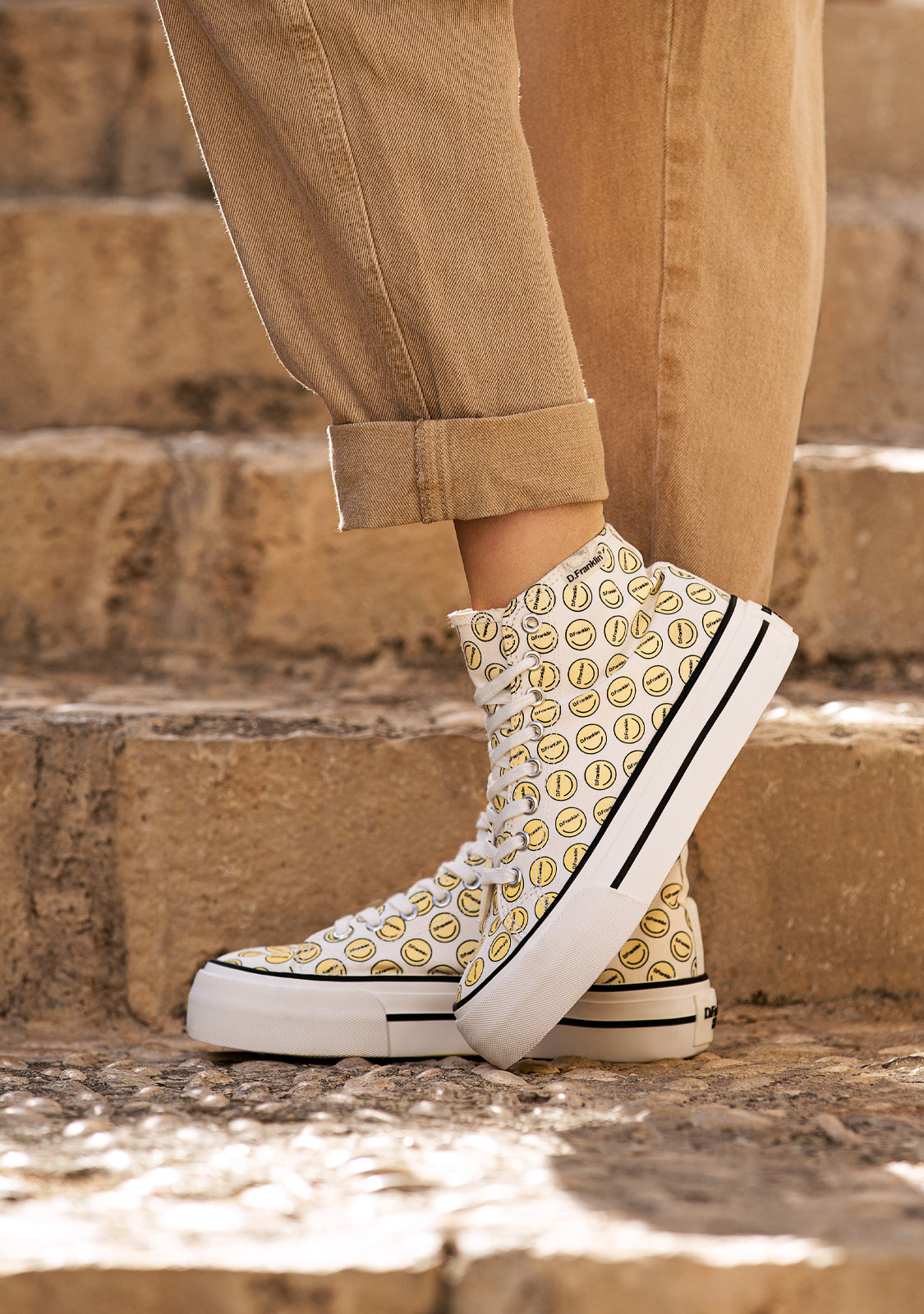 The most loved collection of the season is back. The One Way limited edition is inspired by the most casual collections, combined with the personality and style of D.Franklin®. The One Way UV Smiley Pattern are the perfect sneakers for all kinds of new paths. A street style model that combines current trends with an urban style, along with the most original finishes and details thanks to its Smiley logos. Go outside and watch how it changes color when exposed to sunlight!