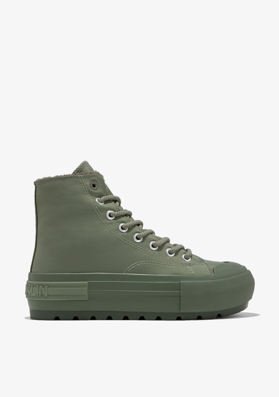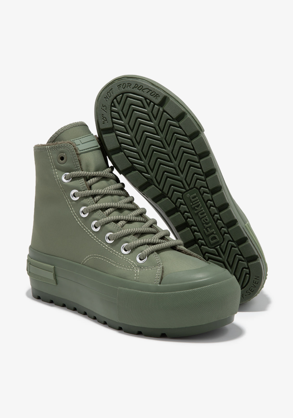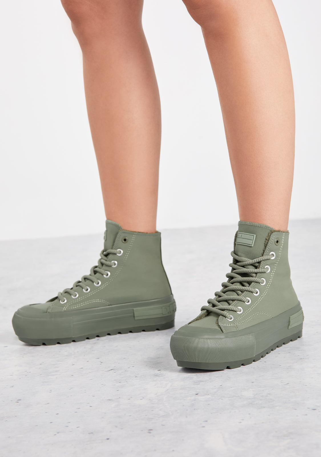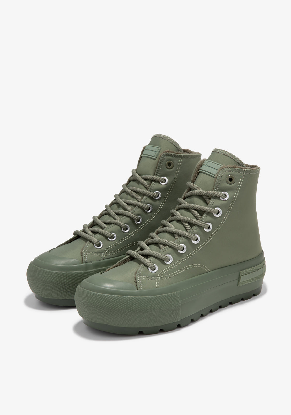 Celebrate the cold with this lined design. Our sneakers fuse comfort and warmth in a green-toned ankle boot. Matching rounded laces give them an urban aesthetic and perfect support.