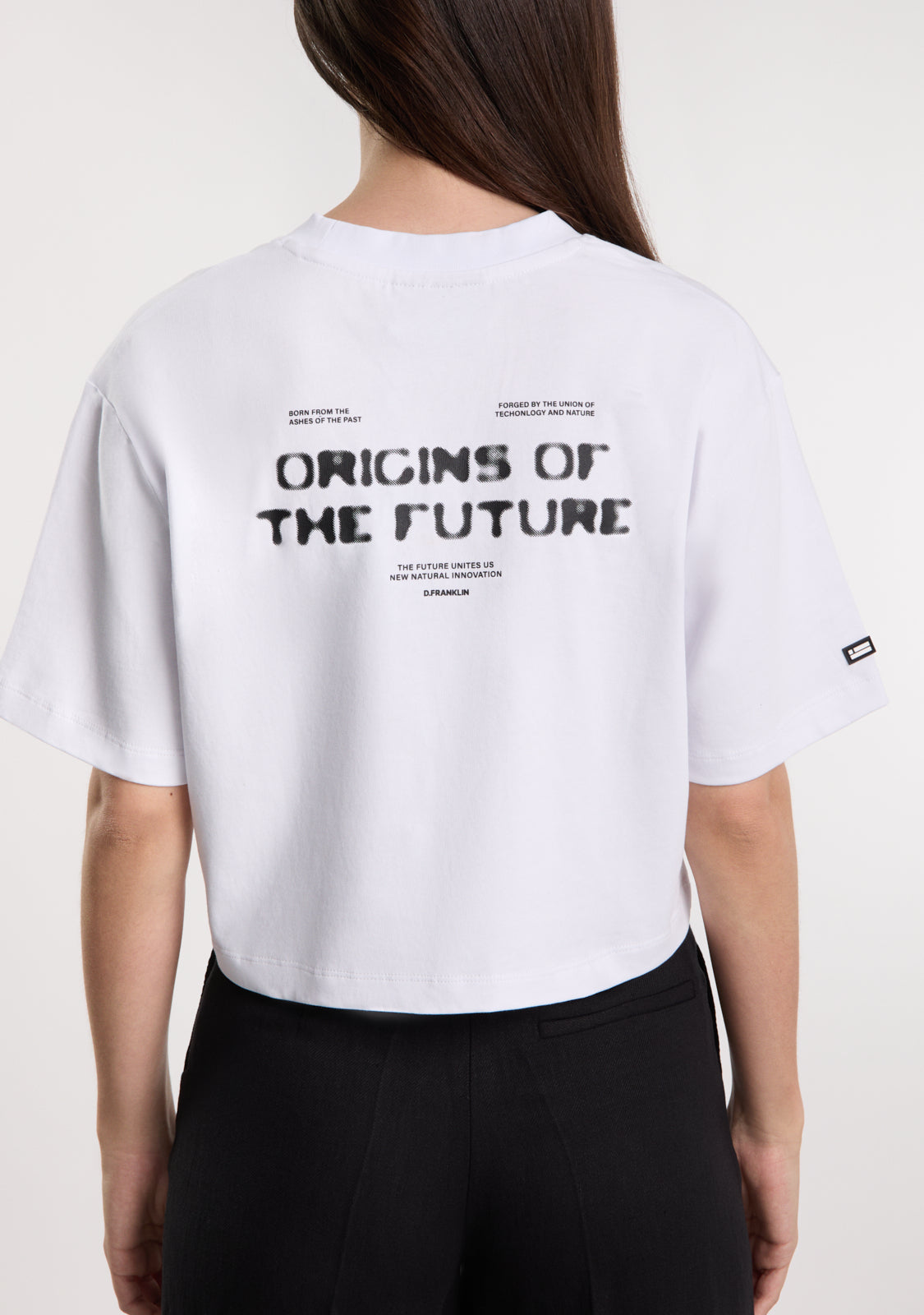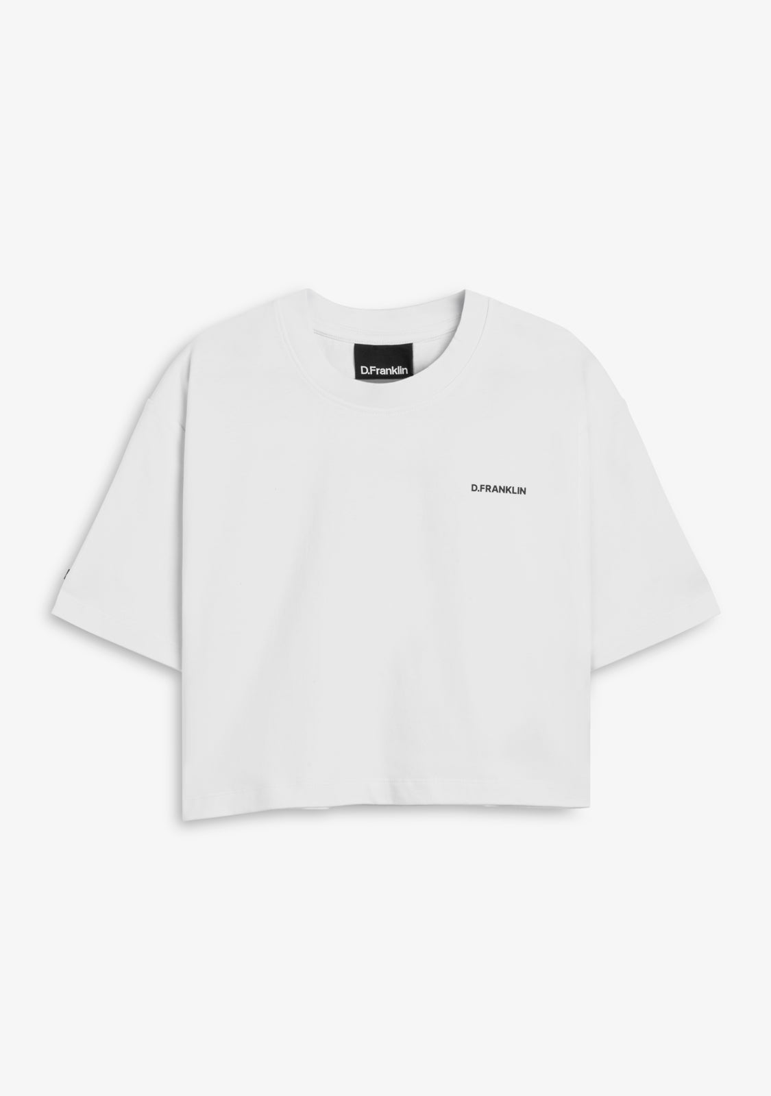 The Origins Cropped T-Shirt White / Black by D.Franklin is the perfect t-shirt for a casual yet stylish look. Made from 100% 230 GMS cotton, it offers a soft and comfortable feel all day long. Its loose fit and cropped design add a modern and fresh touch.