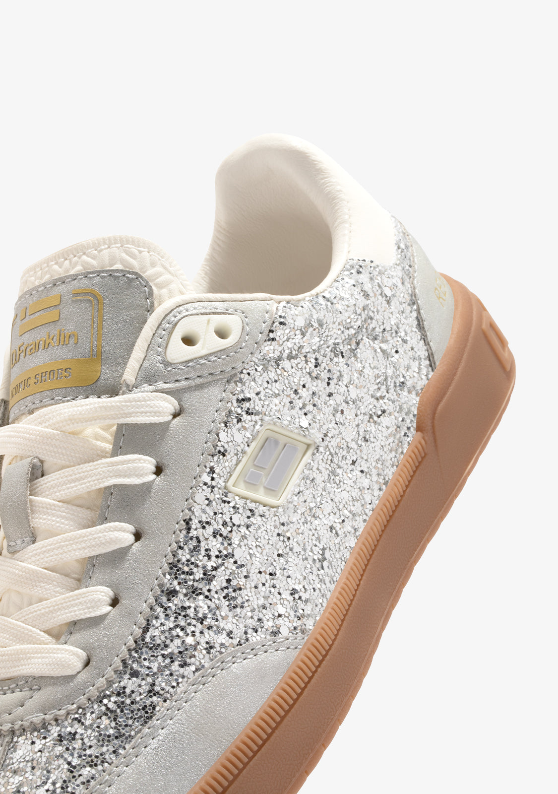 The Rebel Glitter Silver trainers by D.Franklin are the perfect casual footwear for those seeking style and comfort in their daily lives. This model, with an elegant suede finish, combines versatility and modern design in a beige tone that easily adapts to any outfit.