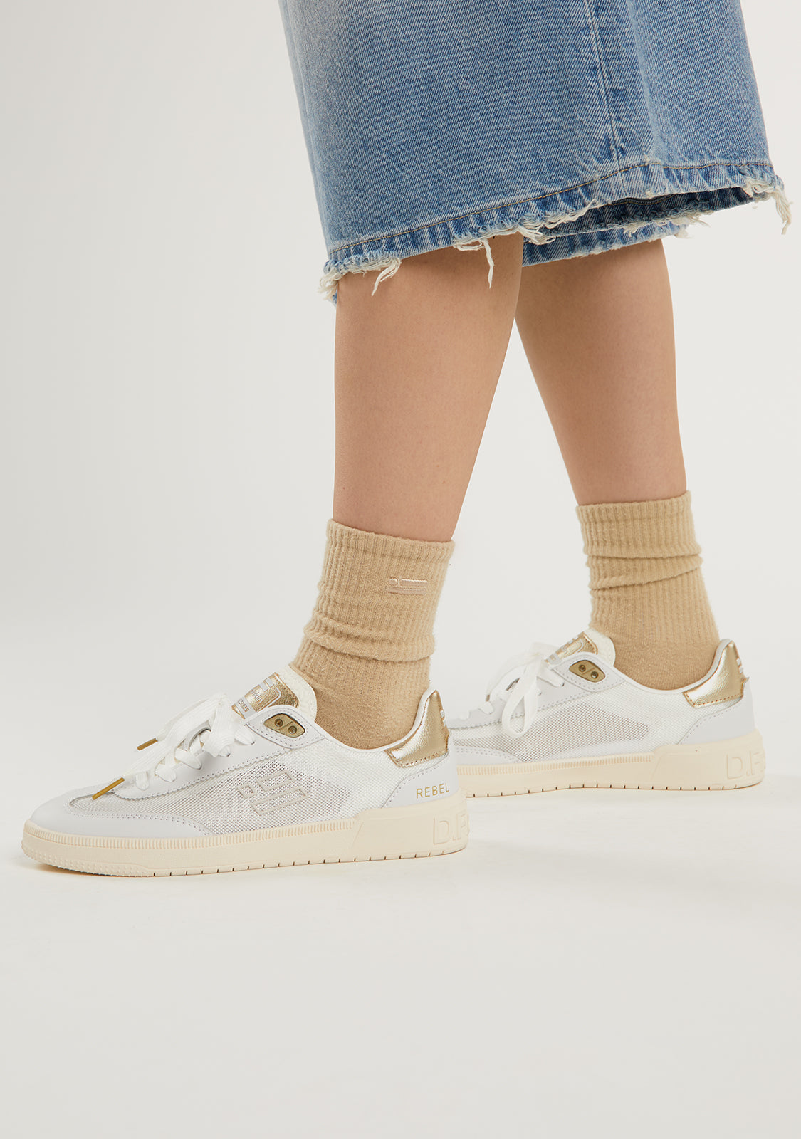 Perfect for pairing with both casual and more sophisticated outfits, the Rebel Mesh Flag White / Gold trainers are the ideal choice for those who value unique style without compromising on comfort. Redefine your look with these essential trainers.