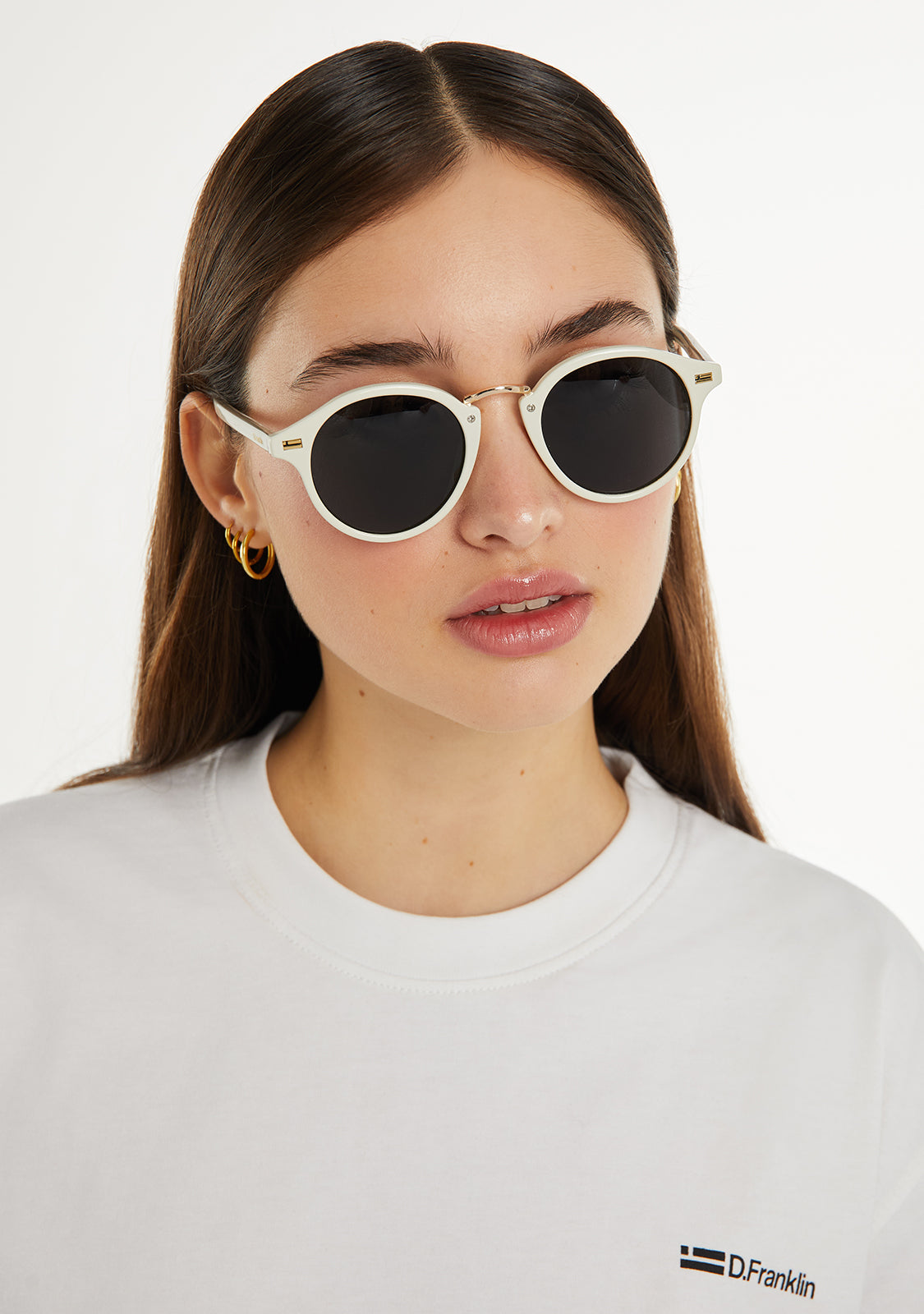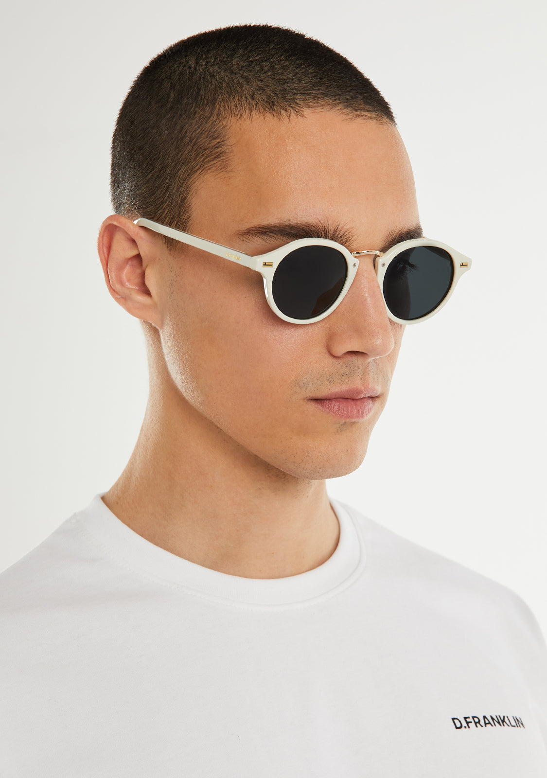 Rediscover our Roller silhouette with a new impeccably finished frame. This model is designed in white tones and features our signature D.Franklin details: logo engraved on both temples and our emblem on the right lens. The lens width is 49 mm and the front lens width is 140 mm. The side temples are 145 mm long.