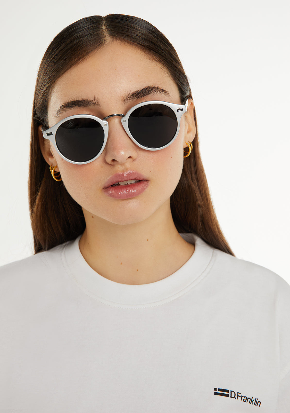 Rediscover our Roller silhouette with a new impeccably finished frame. This model is designed in metallic silver and features our signature D.Franklin details: engraved logo on both temples and our emblem on the right lens. The lens width is 49 mm and the front lens width is 140 mm. The side temples are 145 mm long.