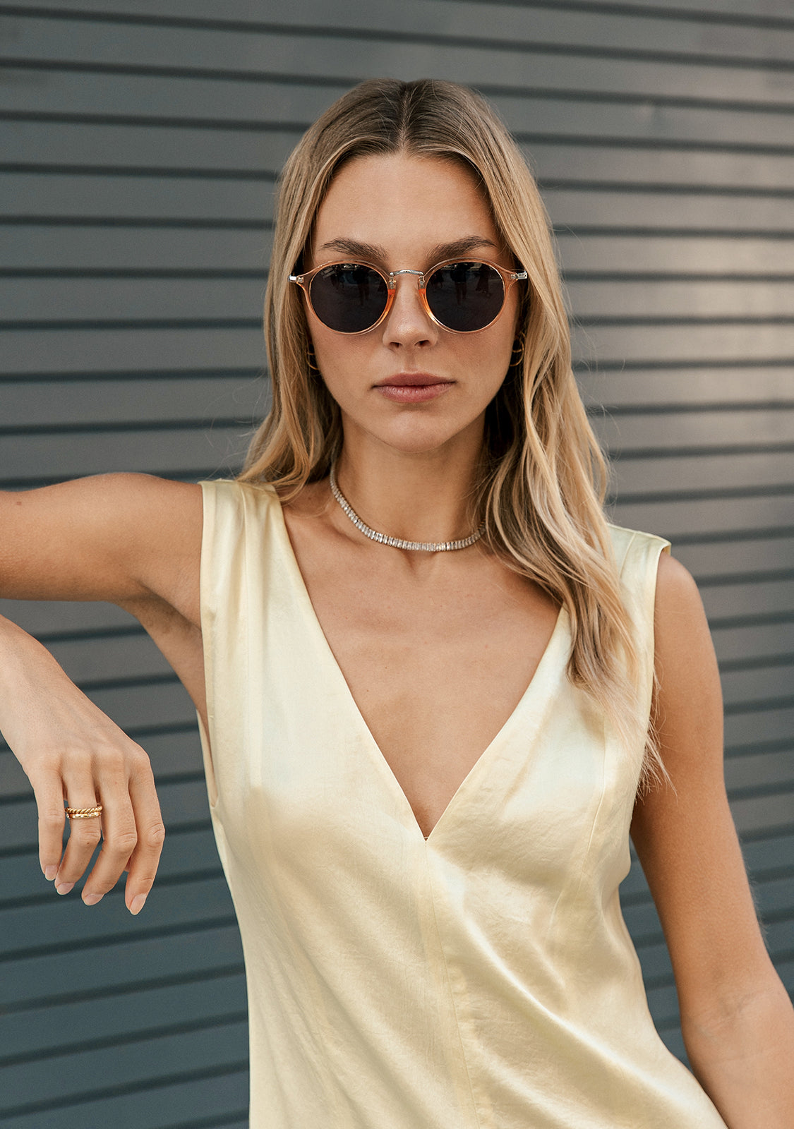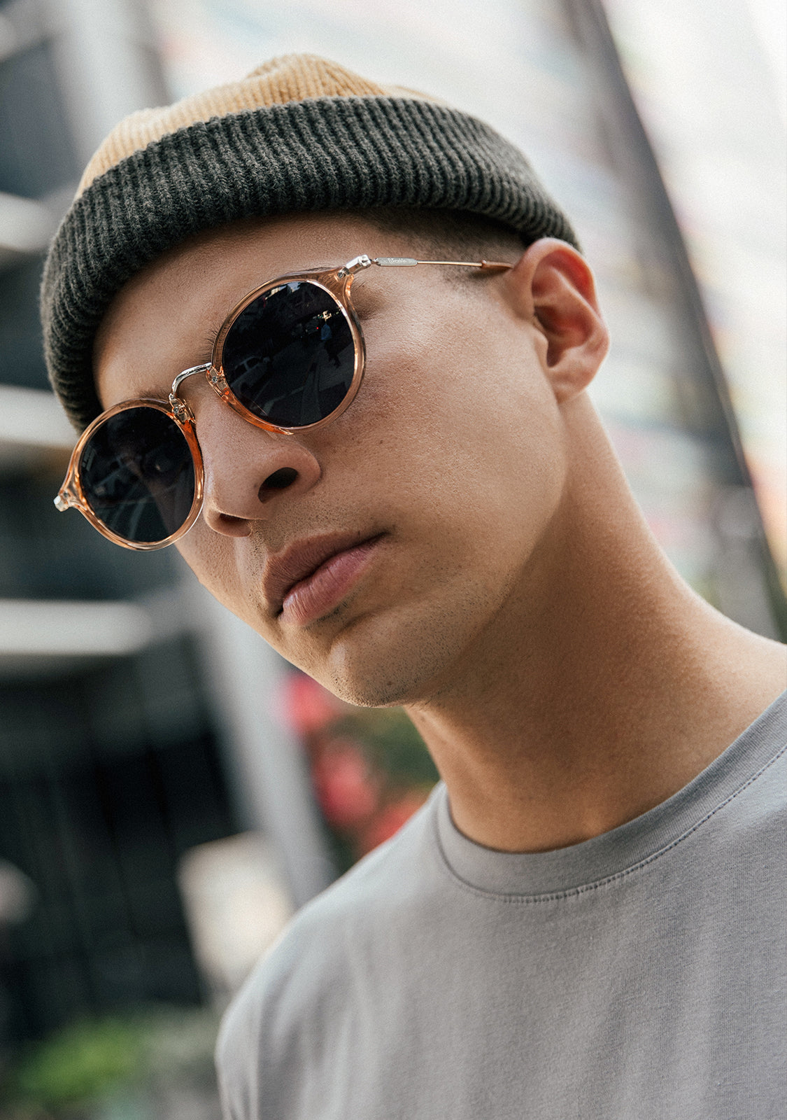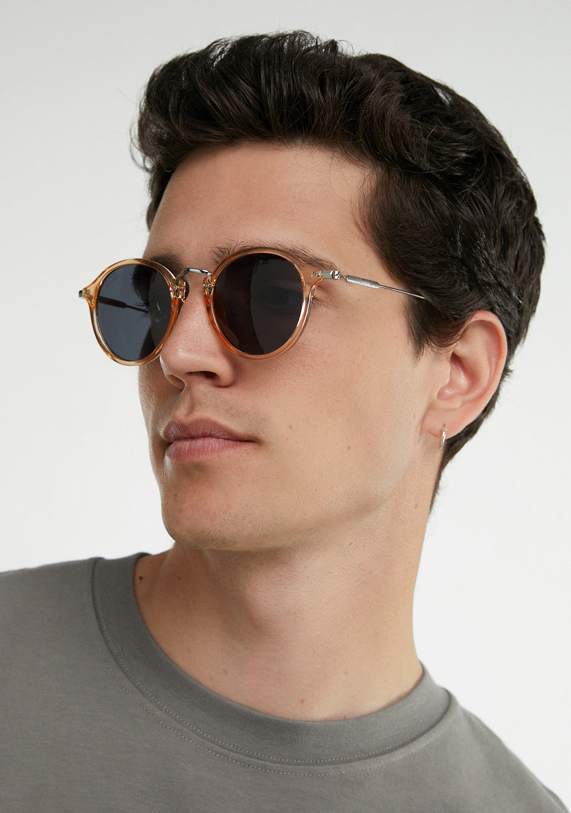 Rounded grey tinted lenses and an amber frame reinforce the seventies aesthetic of this model. It features our signature D.Franklin details: the logo engraved on both metal temples and our emblem on the right lens. With a lens width of 49mm and a 148mm front width frame, these glasses will flatter most faces. The side temples are 145mm long.