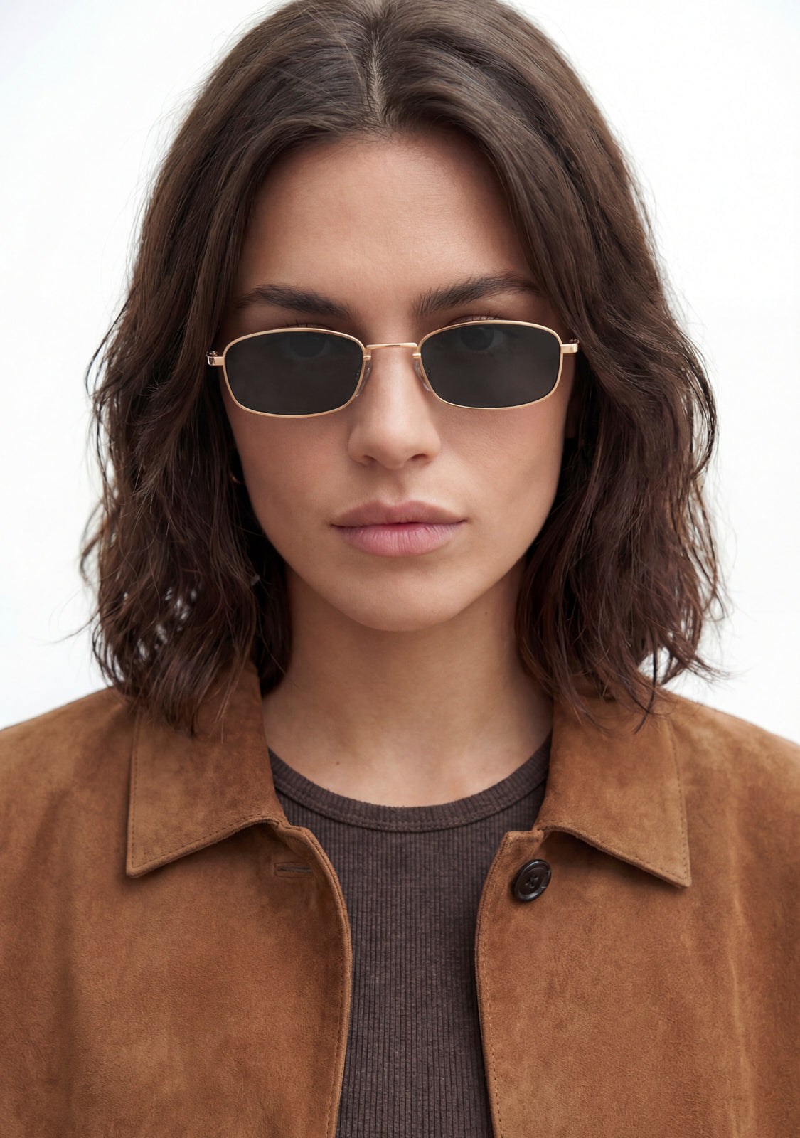 The Square Legacy design features a metallic finish with a rectangular aesthetic. Its gold-tone frame has been designed with anti-reflective smoky-effect lenses. The front measures 142 mm and the lens width is 56 mm. The temples are 140 mm long and feature our signature details. A retro yet minimalist piece to frame any look.