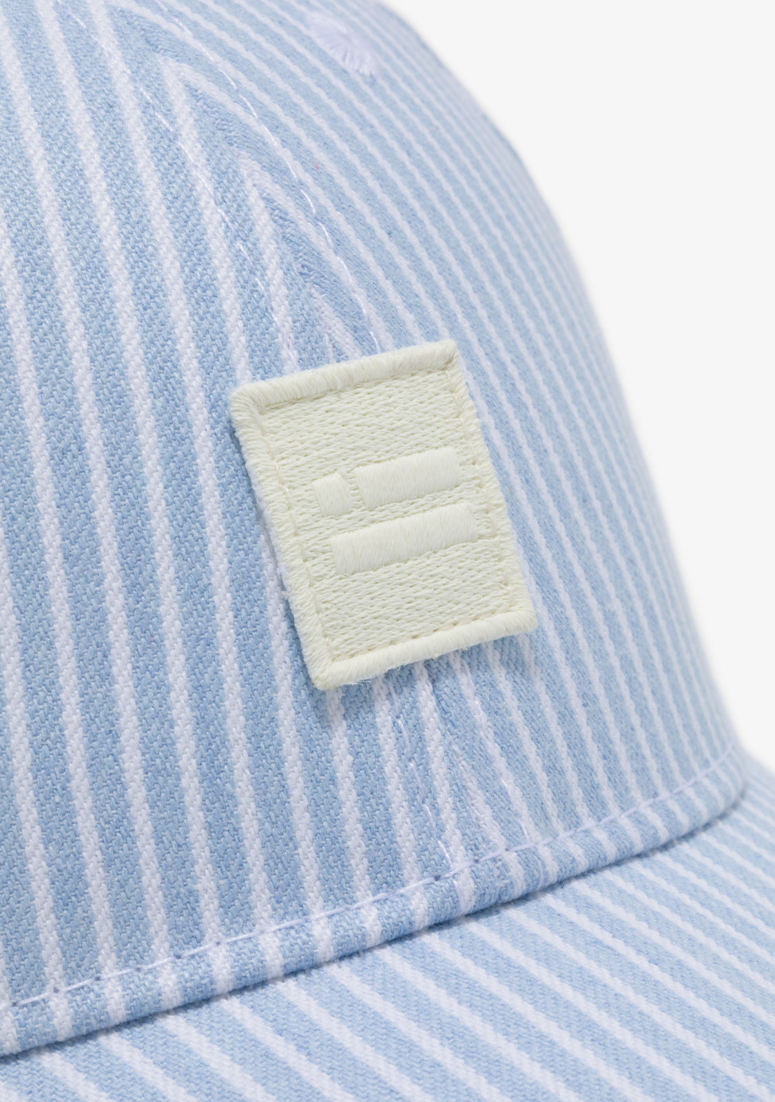 The Stripes Baseball Cap Denim by D.Franklin is a unisex cap in a light denim-blue colour with a subtle pinstripe pattern. Made from 100% cotton, it’s lightweight, breathable, and comfortable for everyday use.