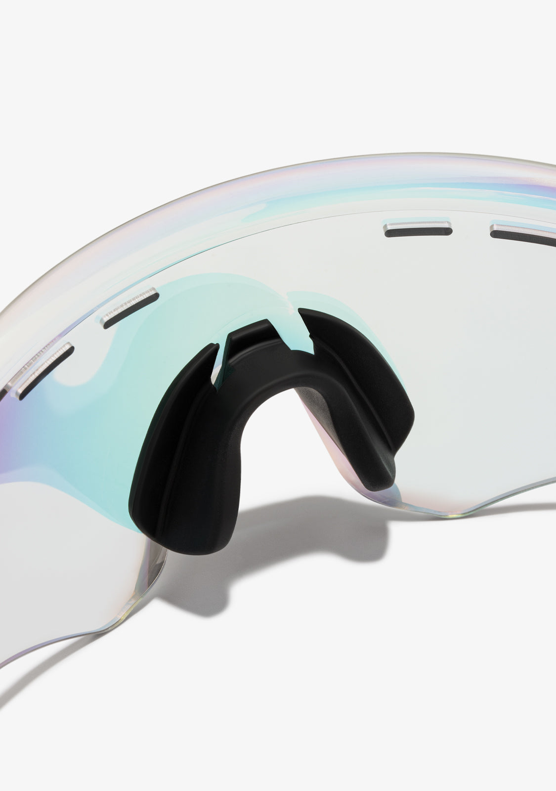 - Photochromic Smoke-Pink Revo polycarbonate lenses: optimal visibility with a sporty aesthetic