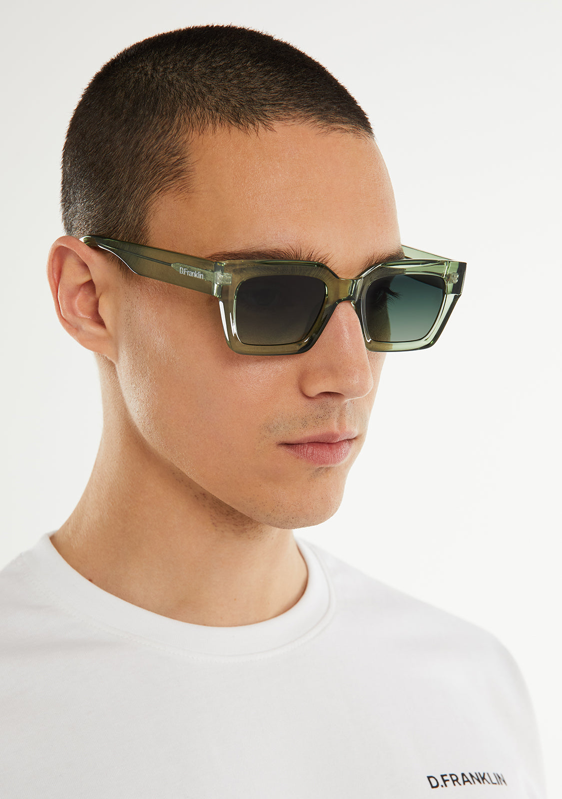 Our Tokyo model in green tones and vintage style features the distinctive details of the D.Franklin brand, the logo engraved on the temples and the emblem on the lens. The lens width is 51 mm and the front is 143 mm. The side temples have a length of 145 mm.