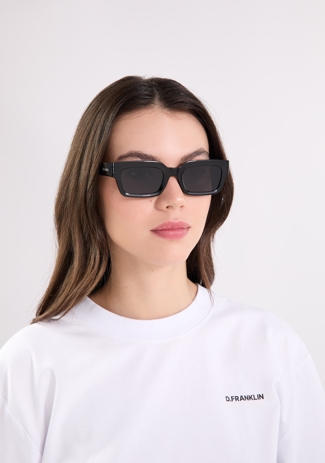 The Tokyo Low Black / Black by D.Franklin stand out with their contemporary design and technical functionality. Made with a TR90 frame and bridge, these sunglasses are lightweight and durable, ensuring maximum comfort throughout the day. The acetate temples provide a perfect fit and a sophisticated touch.