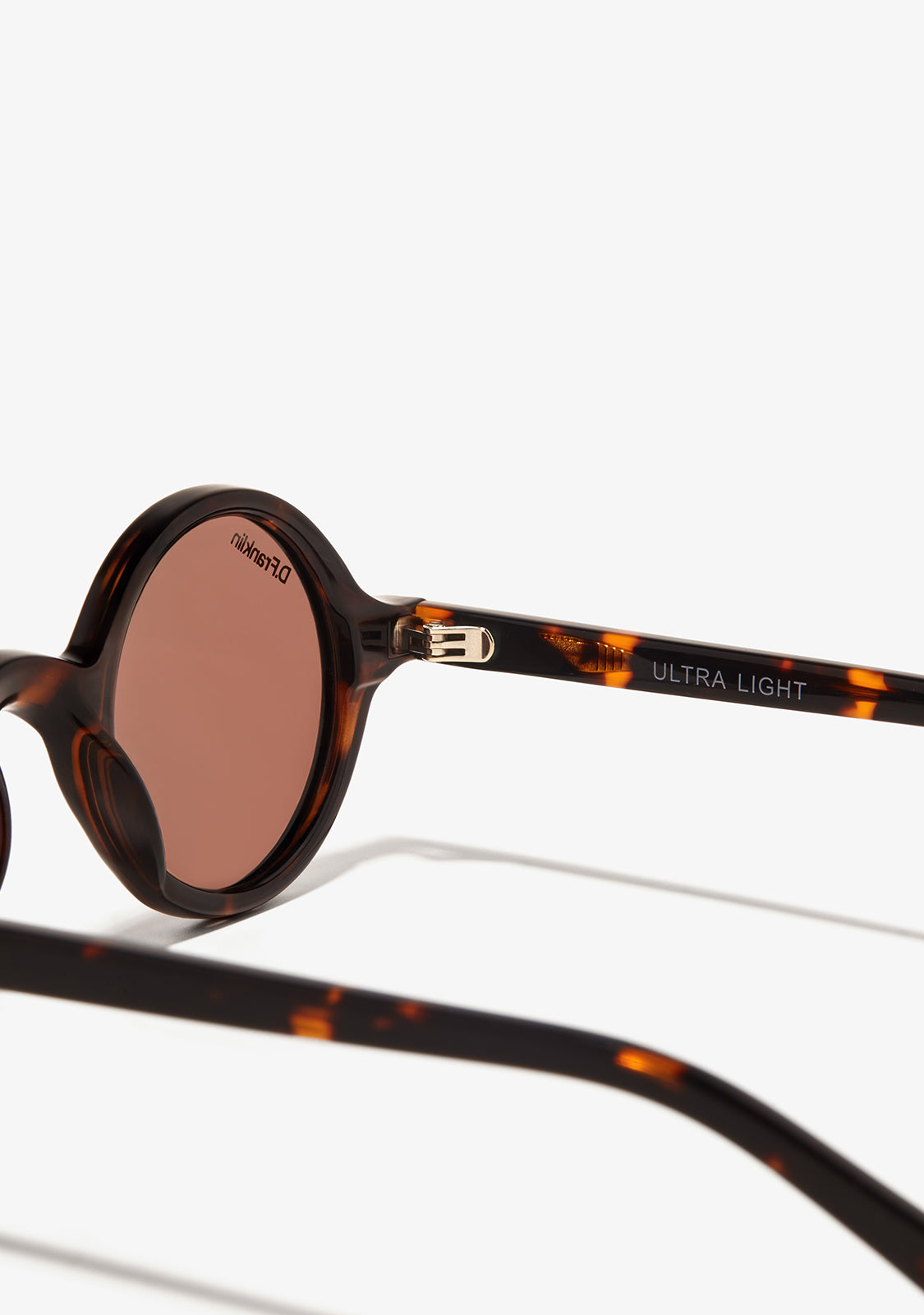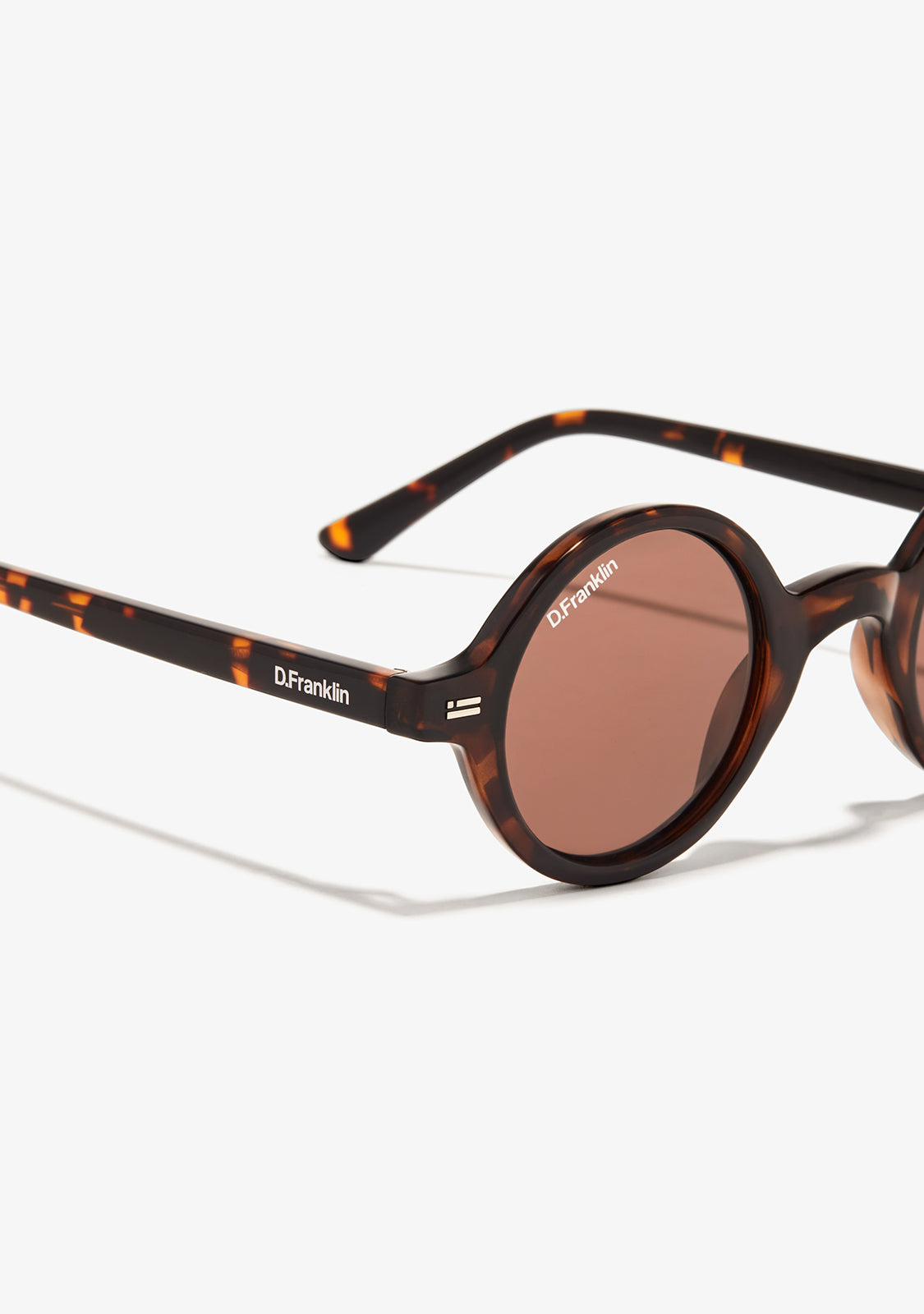 The Ultra Light Round Tort / Brown sunglasses by D.Franklin stand out for their minimalist design and superior functionality. With a TR90 front frame, these sunglasses combine lightweight construction and durability, making them ideal for extended wear. The acetate temples ensure a comfortable fit and an elegant finish.