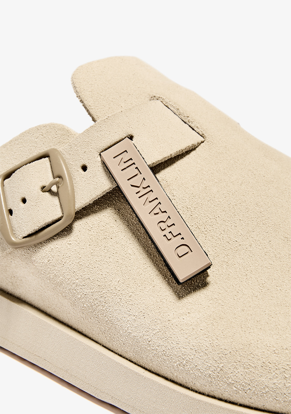 The Vibe Clog Buckle Beige by D.Franklin combines modern design and functionality, making it the perfect closed clog for any occasion. Its suede upper provides a soft and elegant finish, while the EVA sole ensures lightness and excellent cushioning, ideal for long days.