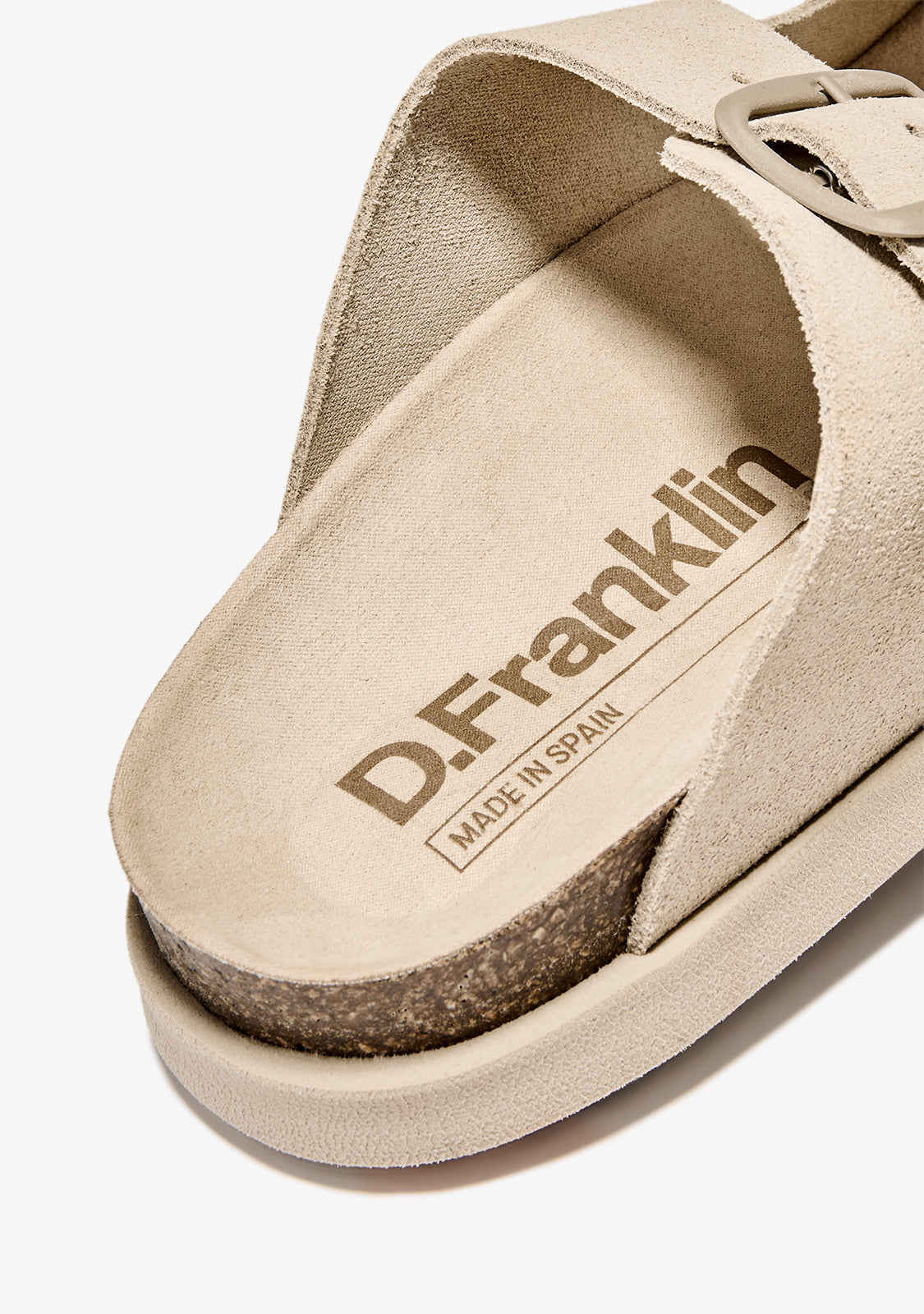 Discover the perfect combination of style and comfort with the Vibe Sandals Buckle Beige by D.Franklin. Designed with a cow suede upper, these sandals offer a soft touch and elegant finish, perfect for complementing any look.