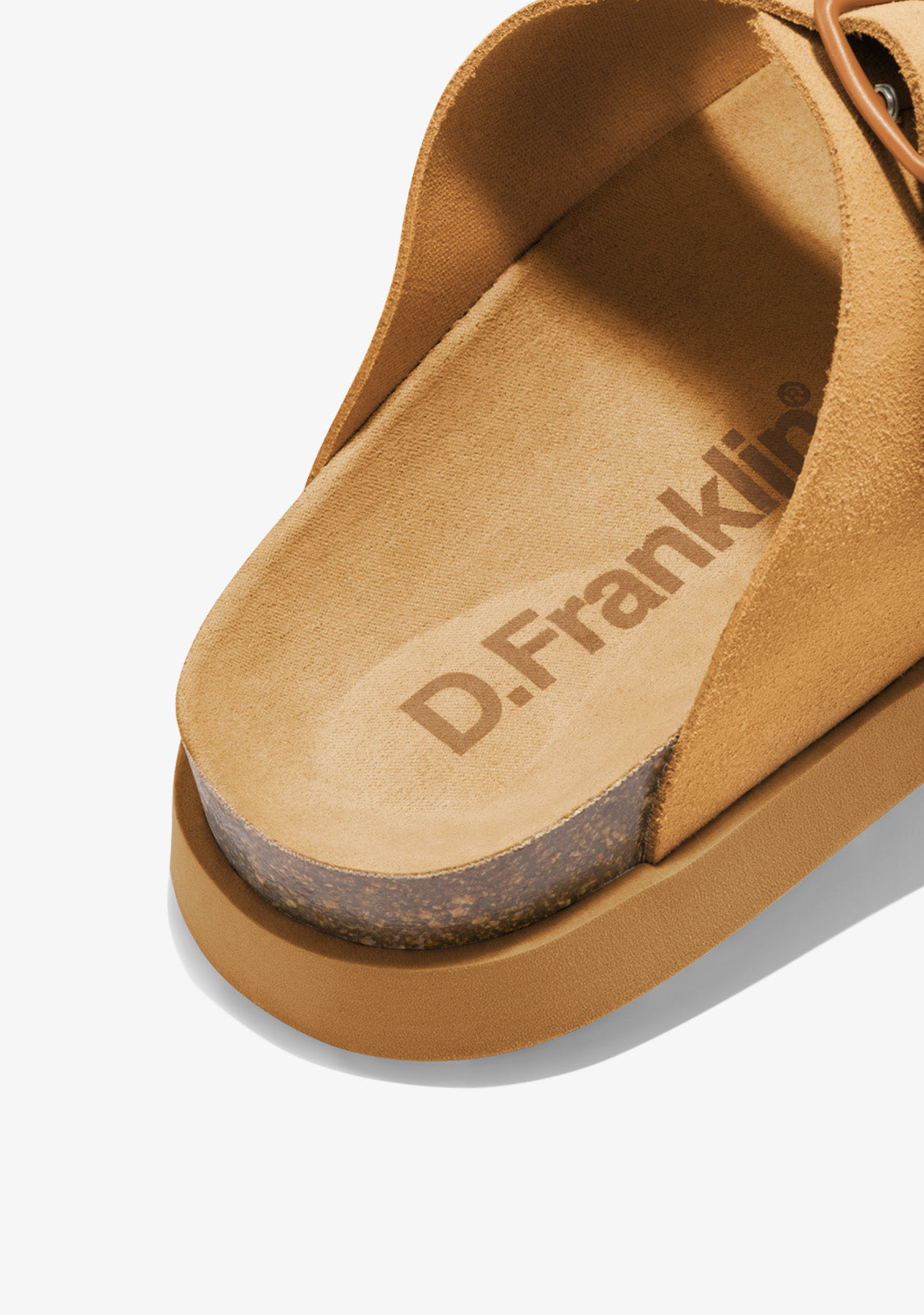 Discover the perfect combination of style and comfort with the Vibe Sandals Buckle Tan by D.Franklin. Designed with a cow suede upper, these sandals offer a soft touch and elegant finish, perfect for complementing any look.