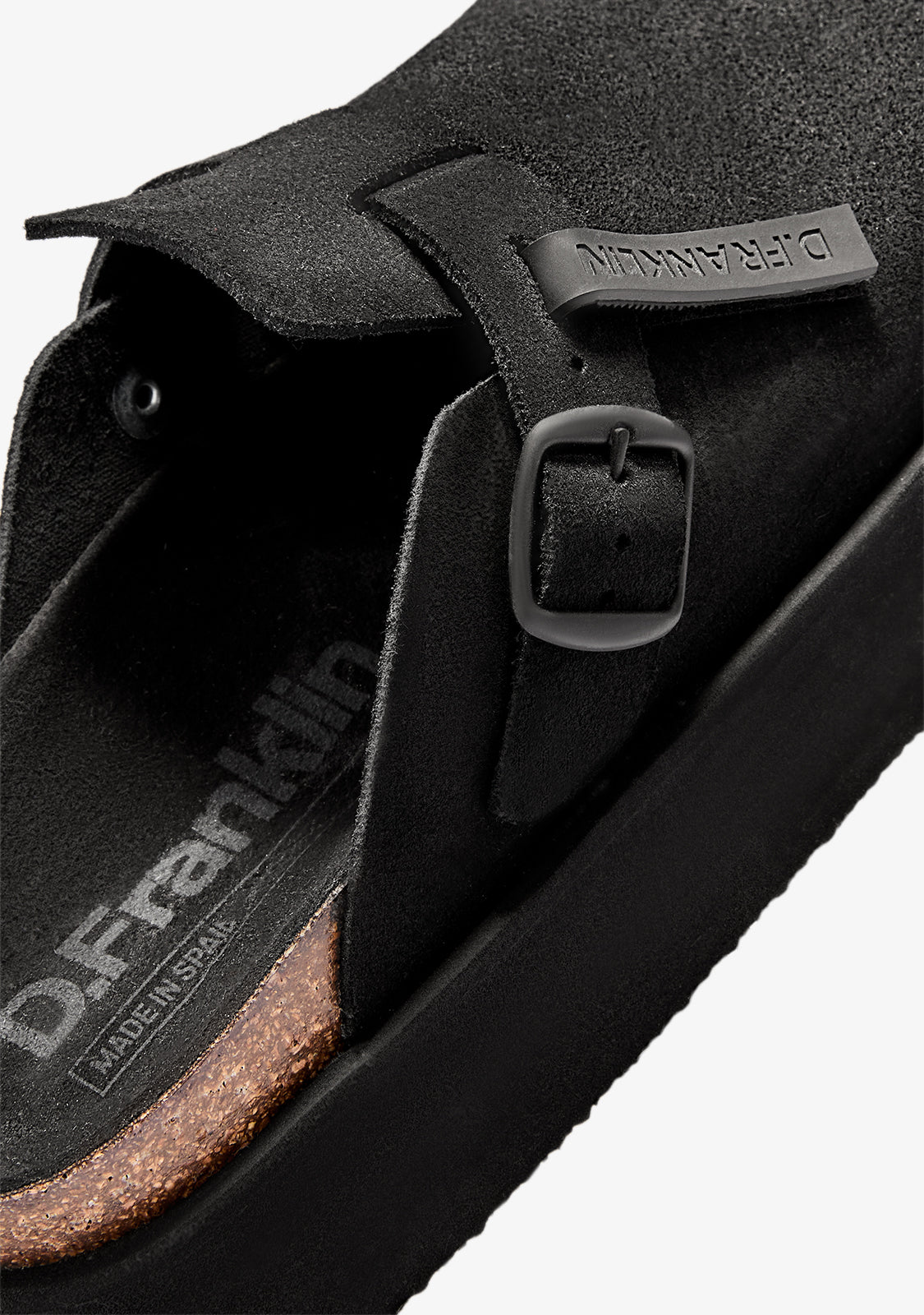 Discover the perfect blend of style and comfort with the Vibe Sandals Clog Platform Suede Black by D.Franklin. Crafted from soft suede, this platform clog delivers a premium look that elevates any outfit.