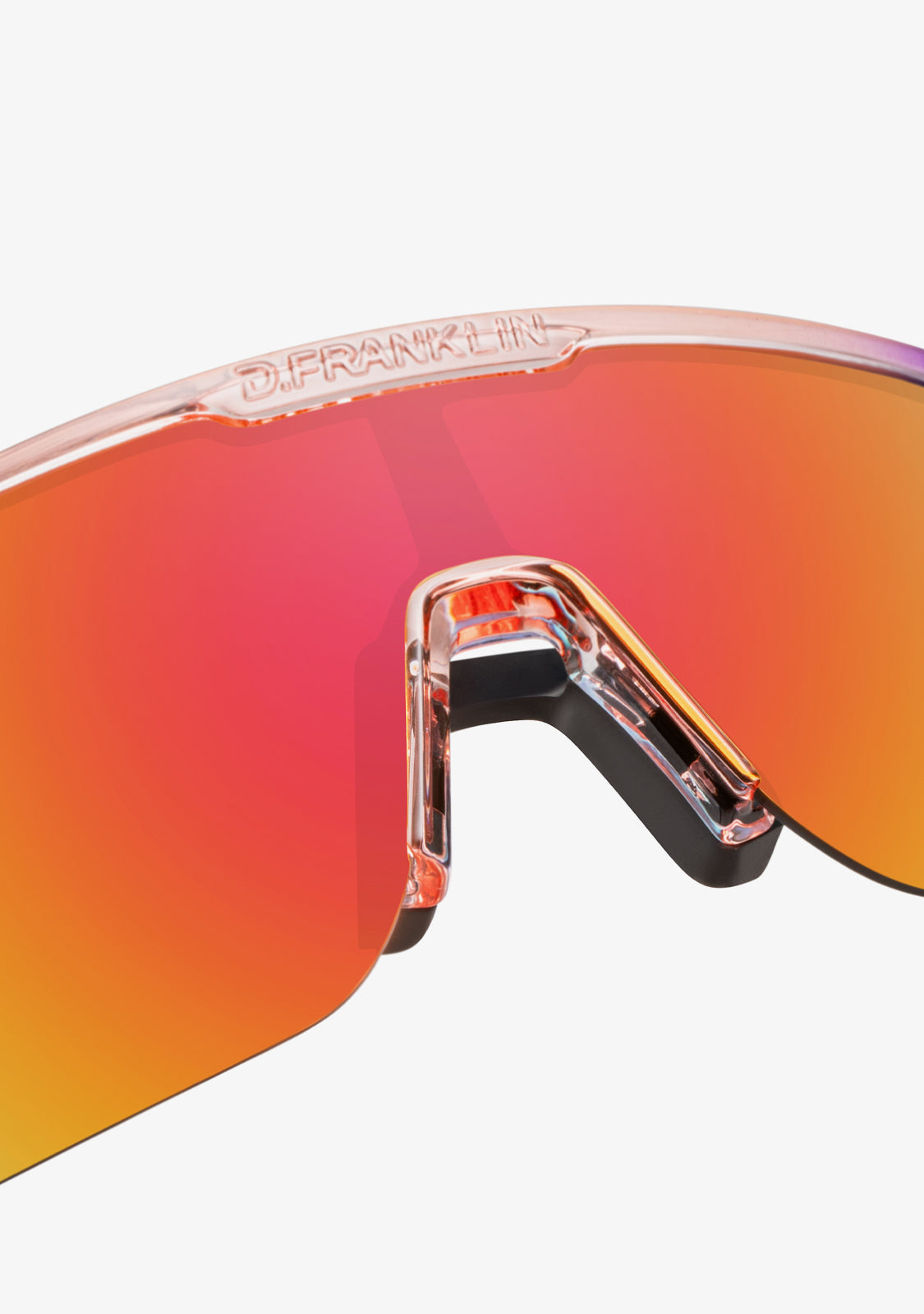 The Wind Fifty Grad Pink / Pink model stands out for its distinctive dual-tone finish and aerodynamic frame that enhances stability and airflow. It features a 144 mm front and 140 mm lenses, precisely engineered to optimize wind resistance. The 130 mm arms display our emblem on both sides, while silicone pads on the tips and nose bridge ensure a secure, comfortable fit.